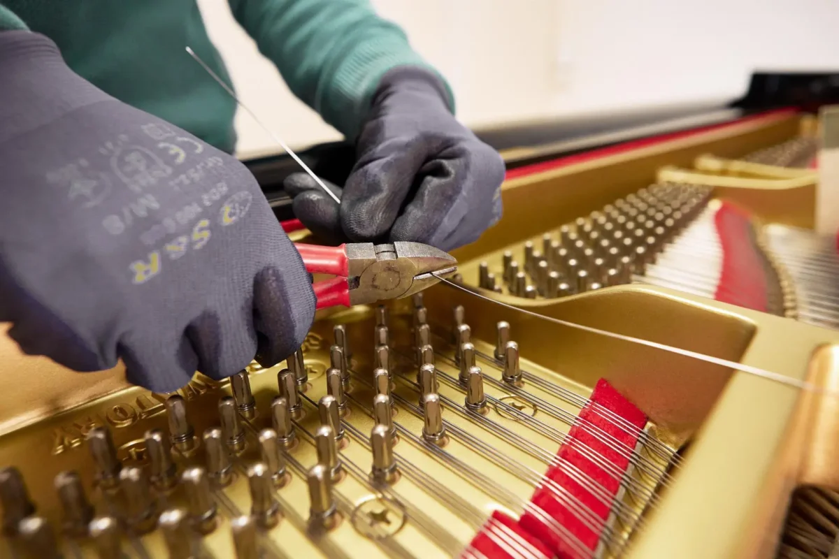 Un piano tiene aproximadamente 230 cuerdas, cada una con una medida específica esencial para su rendimiento óptimo. En nuestras intervenciones, prestamos especial atención a mantener las medidas originales de cada cuerda, garantizando que la calidad sonora y la afinación del piano se conserven como cuando era nuevo.